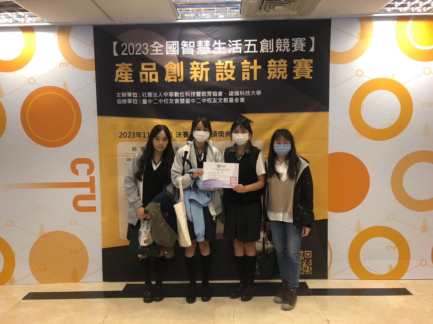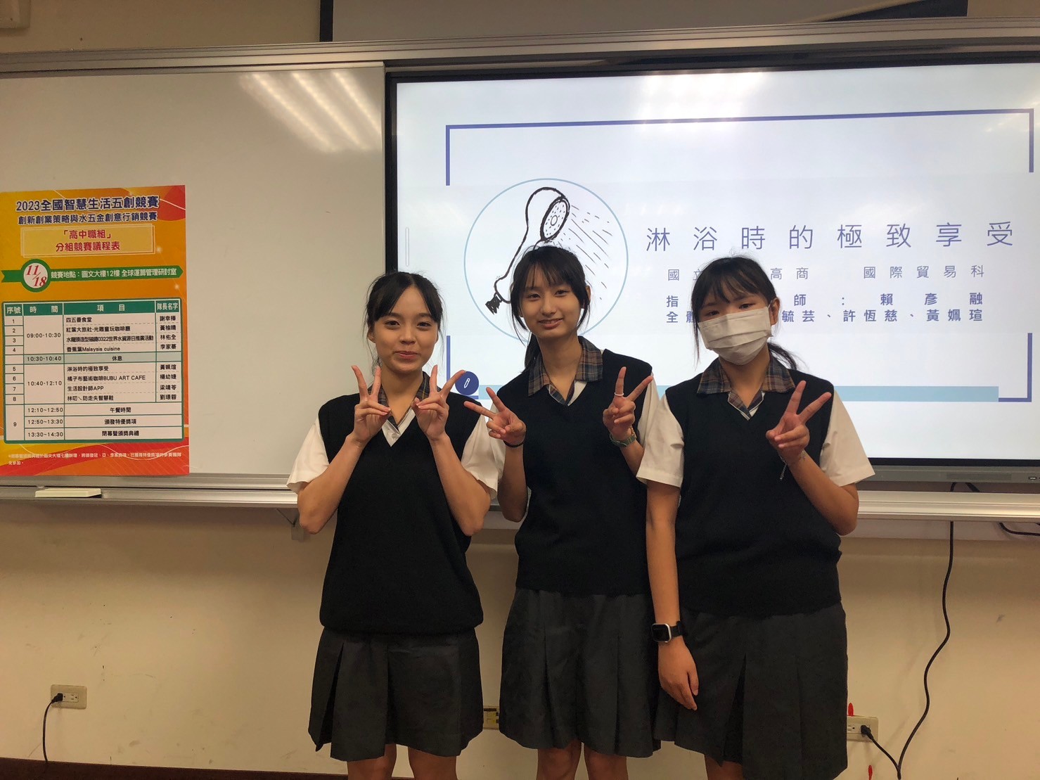 賀 ! 國三2班同學參加2023年全國智慧生活五創競賽-創新創業策略與水五金創意行銷競賽-優勝 賀 ! 吳毓芸、黃姵瑄、許恆慈 同學 感謝導師朱燕華教師與指導教師賴彥融教師,辛勤指導 !