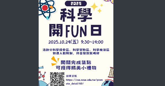 轉知:國立彰化師範大學之「2025年科學開Fun日活動」