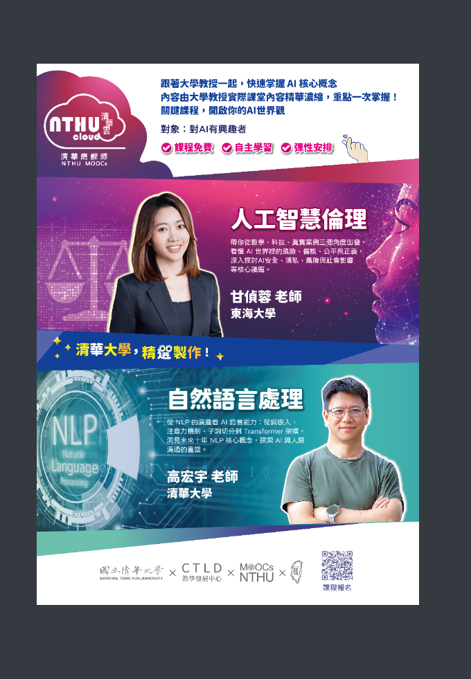 (三)人工智慧倫理 II:安全、隱私與社會影響:https://mooc.nthu.edu.tw/course/info/469。