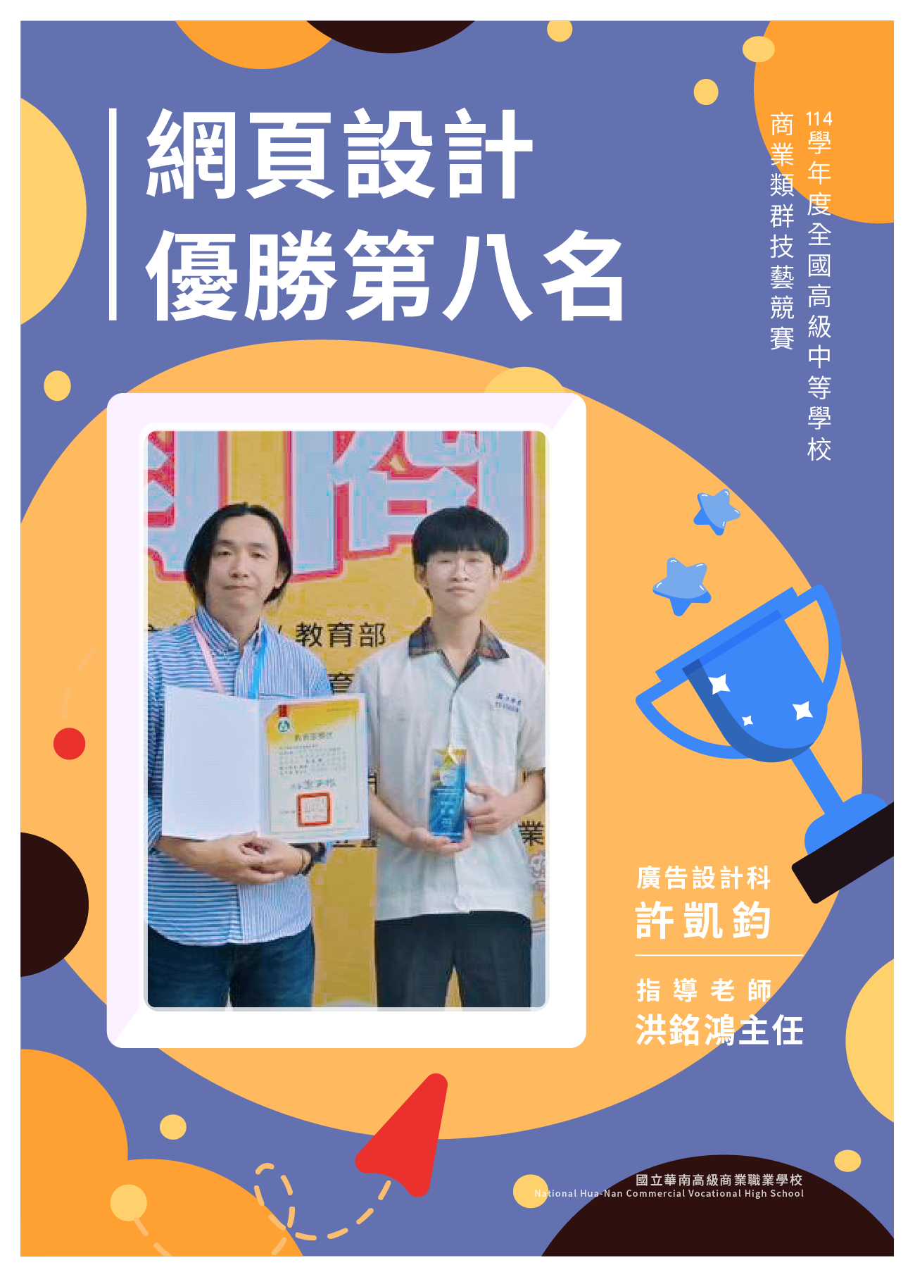 🙌今年本校廣告設計科在114學年度全國高級中等學校技藝競賽商業類群中大放異彩!🙌